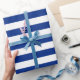 Presente Papel de envolvimento listrado branco azul náutico