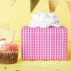 Um papel de envolvimento projetou com um teste padrão do guingão do rosa quente e do branco no tamanho pequeno.