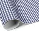 Um papel de envolvimento projetou com um teste padrão do guingão dos azuis marinhos e do branco no tamanho pequeno.