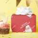 Adicione seu nome a este papel de envolvimento vermelho tirado mão do Natal do papai noel. O design modelado festivo tem o texto do "Feliz Natal" e o nome brancos do costume.