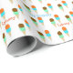 Papel de envolvimento colorido do aniversário feito no branco, com um teste padrão colorido do cone do sorvete. Personalize o texto azul e alaranjado para serir sua ocasião.