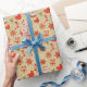 Este envolvimento retro do Natal é feito com corações, presentes, meias, flocos de neve, árvores, bastões de doces e cláusulas do papai noel.