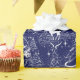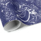 papel de embrulho profundo dos azuis marinhos com impressão inspirado jouy toile branco do de. Uma fada elegante da floresta toma um stroll quieto através de uma floresta sereno do inverno, com cervos, árvores, e neve. Aperfeiçoe para um Natal elegante ou um evento temático do feriado de inverno.