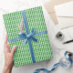 Um papel de envolvimento projetou com um teste padrão verde e branco do guingão no tamanho pequeno.