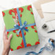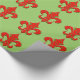 O papel de envolvimento original e festivo tem um fundo verde macio, e um teste padrão da grande flor de lis (flores de lis?) que tem um teste padrão menor da flor de lis dentro deles. Este papel tiver um jazzístico, divertimento, impressão de Nova Orleães quando Christmasy ainda permanecendo. Imagine como o excelente isto olharia com um arco vermelho grande, em seu pacote.