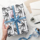 Presente Papel de Giftwrap de Padrão Branco Mínimo Preto Fu