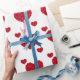 Este papel de embrulho de casamento mostrado com uma adorável rosa vermelha de forma cardíaca de impressão num fundo branco. Personalize este item e adicione nomes ou comprares como está.