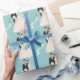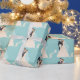 Papel de embrulho mostrado com um adorável impressão de casal de noiva em um fundo azul. Personalize este item ou comprar como está.