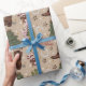 Espantoso e divertido jornal de natal de cowboy do oeste. Torna-se para embrulho festivo. A design inclui botas e chapéus de cowboy, cacto, árvores de Natal e doces. Esquema de cor verde, marrom, vermelho e branco. Fundo de areia bege.