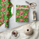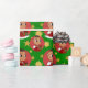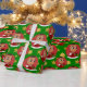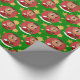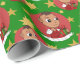 Papel de embrulho de Natal com ilustração de uma menina ou rapaz feliz sorridente, o bebê está vestindo roupas vermelhas e brancas e segurando um presente; com um modelo de texto editável para seu nome ou mensagem, design de feriados de Natal com um plano de fundo verde perfeito com estrelas