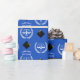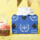 Encapsulamento de presente de formando de direito criativo com escalas felizes de justiça em um fundo azul real para festas de formatura. Edite o texto para adicionar o nome do seu advogado favorito.