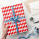 Um papel de embrulho projetado com um padrão de estilo vermelho e branco.