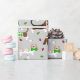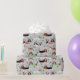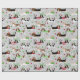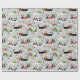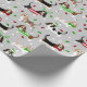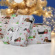 Cães de Caça-Besta com casacos castanhos, pretos, brancos e limões vestidos de roupas festivas de férias, chapéus de Santa e blárgulas com Enfeites de natal espalhados.