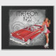 Dar papel de embrulho com imagem de carro vintage e de um tapete com as palavras "Meteor 1955".