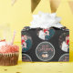Faça seus presentes se destacarem debaixo da árvore com este papel preto de embrulho de Natal personalizado com uma foto personalizada, "Feliz Natal", cartazes de cana-doce, biscoitos, cacau e seu nome familiar e ano. O dramático fundo negro adiciona uma reviravolta moderna e elegante ao tema do feriado lúdico. Perfeito para embrulhar presentes familiares, criar pacotes de guardas, ou fazer sua manhã de Natal extra memorável.