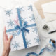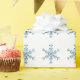 Os cristais azuis espumantes decoram os flocos de neve ilustrados neste plástico festivo de férias.