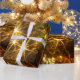 Papel brilhante de embrulho de Natal com bolhas de Natal vermelhas e ouros, luzes cintilantes, galhos de árvores de Natal e galhos de árvores de Natal. NOVAS versões melhoradas com azulejo sem falhas (veja abaixo):