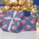Os ornamentos vermelhos e brancos padrão são emparelhados com flocos de neve azuis e verdes em um fundo azul escuro.