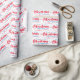 Este papel de embrulho de Natal apresenta uma adorável Design da Calliografia soletrando as palavras "Tenha um Feliz Natal". Ele também permite adicionar uma mensagem personalizada ou seu nome a ser impresso no papel. As cores dominantes deste design são vermelho, azul e branco.