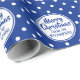Manchas brancas sobre fundo azul. A saudação de "Feliz Natal" e de quem ela é pode ser mudada.