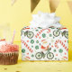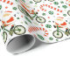 Brincadeira criativa de presentes de férias de bicicleta com Papais noeis engraçados de ciclistas em bicicleta cercada por calções de Natal.