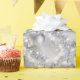 Papel brilhante de embrulho de Natal com Enfeites de natal prateado, luzes brilhantes brancas e tonalidades brilhantes.
