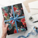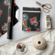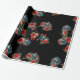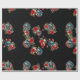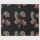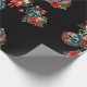 Papel de embrulho preto com ornamentos de crânio e flores