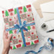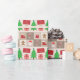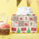 Um papel de embrulho desenhado com alguns símbolos de Natal em fundo quadrado em tons bege. Feliz Natal!