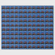 O trator vermelho favorito de um fazendeiro está sobre um fundo azul neste design divertido.