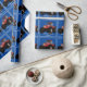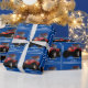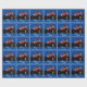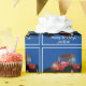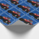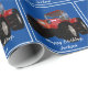 O trator vermelho favorito de um fazendeiro está sobre um fundo azul neste design divertido.