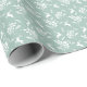 Um papel de embrulho elegante, com padrões, que apresenta renas, bagas, folhas e agulhas de pinheiro ilustradas à mão.