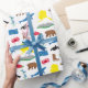Apresentando alguns de seus ícones favoritos do Alasca; botas, ursos pardos, Denali, salmão-de-sockeye, orcas, baleias-jubarte, caranguejos-rei-do-Alasca, puffins, nots-me-esqueço e a bandeira estadual do Alasca.