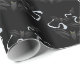 O papel de embrulho do Dia das Bruxas é mostrado num impressão de morcegos pretos. Personalize este papel ou apenas o comprar como está.