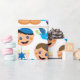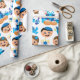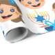 Padrão de excelente para embrulhar seus presentes de Hanukkah. Crianças felizes com presentes, rosquinhas, pombos em fundo branco