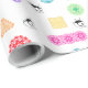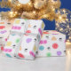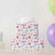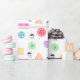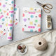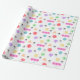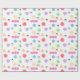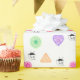 Papel colorido de embrulho coberto por minigráficos de crochê