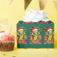 Pickle com chapéu de Papai Noel e papel de embrulho de presente. Para as pessoas que gostam de picles.