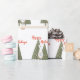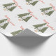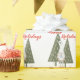 Você vai adorar este elegante, moderno e fofo papel de embrulho de natal! Apresenta uma cena de inverno com um gnomo escandinavo de pernas finas segurando um pássaro azul na frente dos pinheiros. A citação "Feriados Felizes" está na bonito tipografia vermelha.