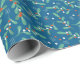 Presente Papel de Natal com Folhas e Frutas Vermelhas Azul