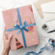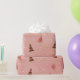 Enrole seus presentes neste único e caprichoso papel de enrolamento de árvores de Natal. Fundo cor-de-rosa com árvores galhadas e paisley.