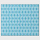 Um papel de empacotamento projetado com um padrão de tons azuis argyle em tamanho grande.