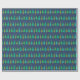Um padrão geométrico festivo de árvores de abeto, turquesa e amarelo. O céu é marinho azul com neve branca caindo.