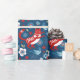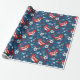 Um giro padrão de gatos de arte popular em azul marinho e vermelho decora este papel de embrulho. É divertido embrulhar um presente para um amante de gatos! Projetado para você pelo Blackberry Boulevard.