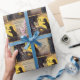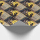 Halloween embrulhando papel com uma imagem vintage de gato preto sentado numa árvore à noite avisando uma coruja das coisas assustadoras do Halloween.