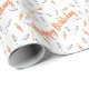 Uma bela ilustração moderna num padrão sem descontinuidades de cenouras e coelhos laranja com um roteiro decorativo personalizado "feliz aniversário". Veja na nossa loja mais papel de embalagem adequado para aniversários e chás de fraldas infantis.
