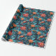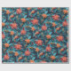 Um belo papel de embrulho com um padrão floral de papel sem costura contra um fundo azul.