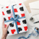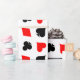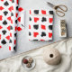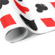 O pôquer joga o papel de embrulho. Design de padrões divertidos com corações, diamantes, paus e espadas. Cor do jogo preto vermelho e branco. Boa ideia para presentes de festa de casamento em Las Vegas. Excelente também para jogadores de ponte e jack preto.