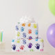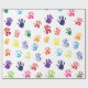 Pequenas pegadas em cores vibrantes.