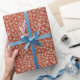 O papel de plástico bonito, com flocos de neve, tem um fundo vermelho, fazer perfeito para os feriados ou aniversários de inverno. Também está disponível uma etiqueta de presente com o mesmo design!