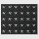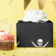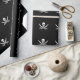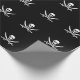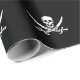 Papel de embrulho mostrado com um impressão de pirata giro para o crânio e as lâminas sobre fundo preto.