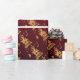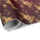 para envolver los regalos este magnífico papel con fondo rojo oscuro y la silueta de la bruja con el castillo de color naranja dorado inspirado del color de la calabaza con toque de brillo.
